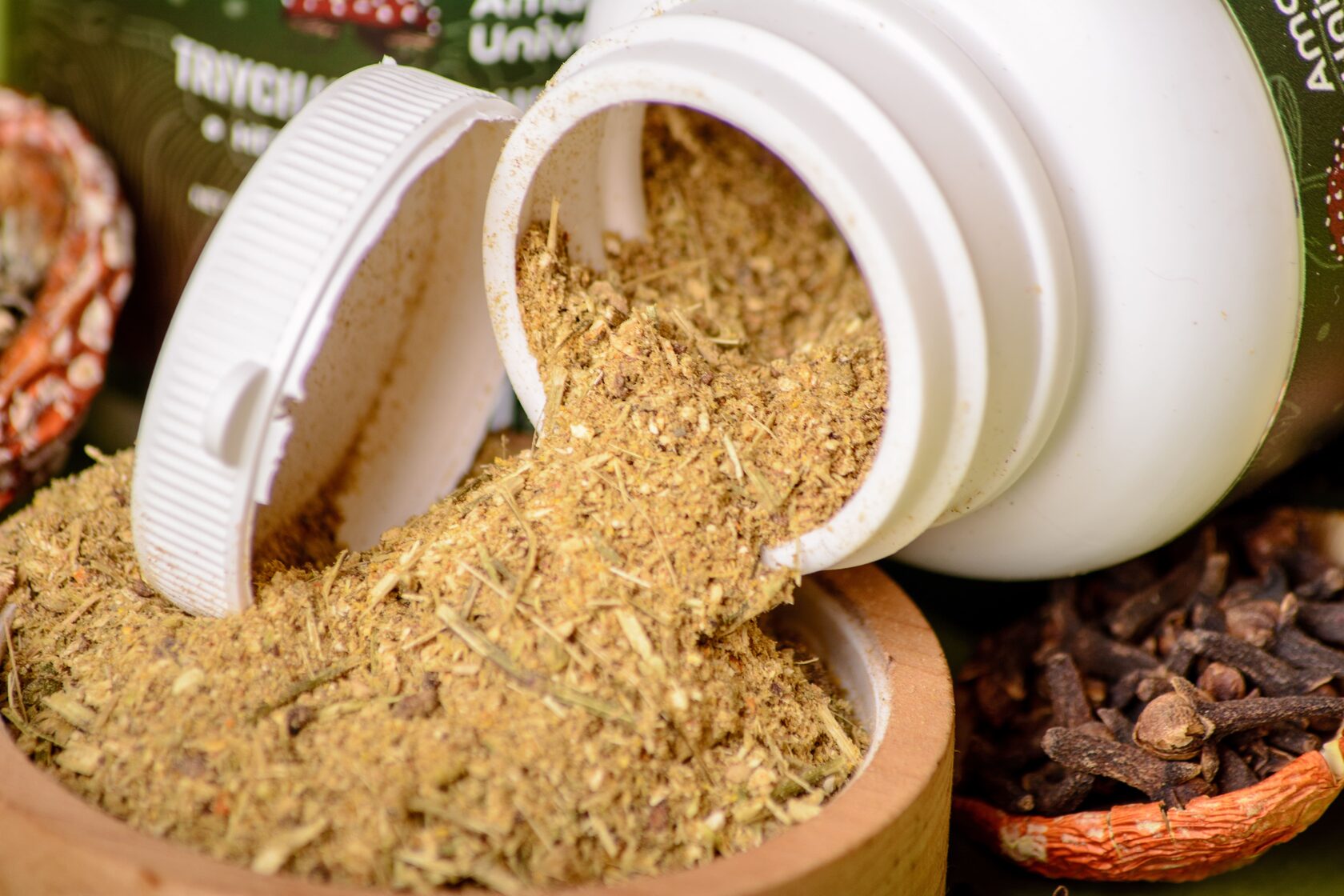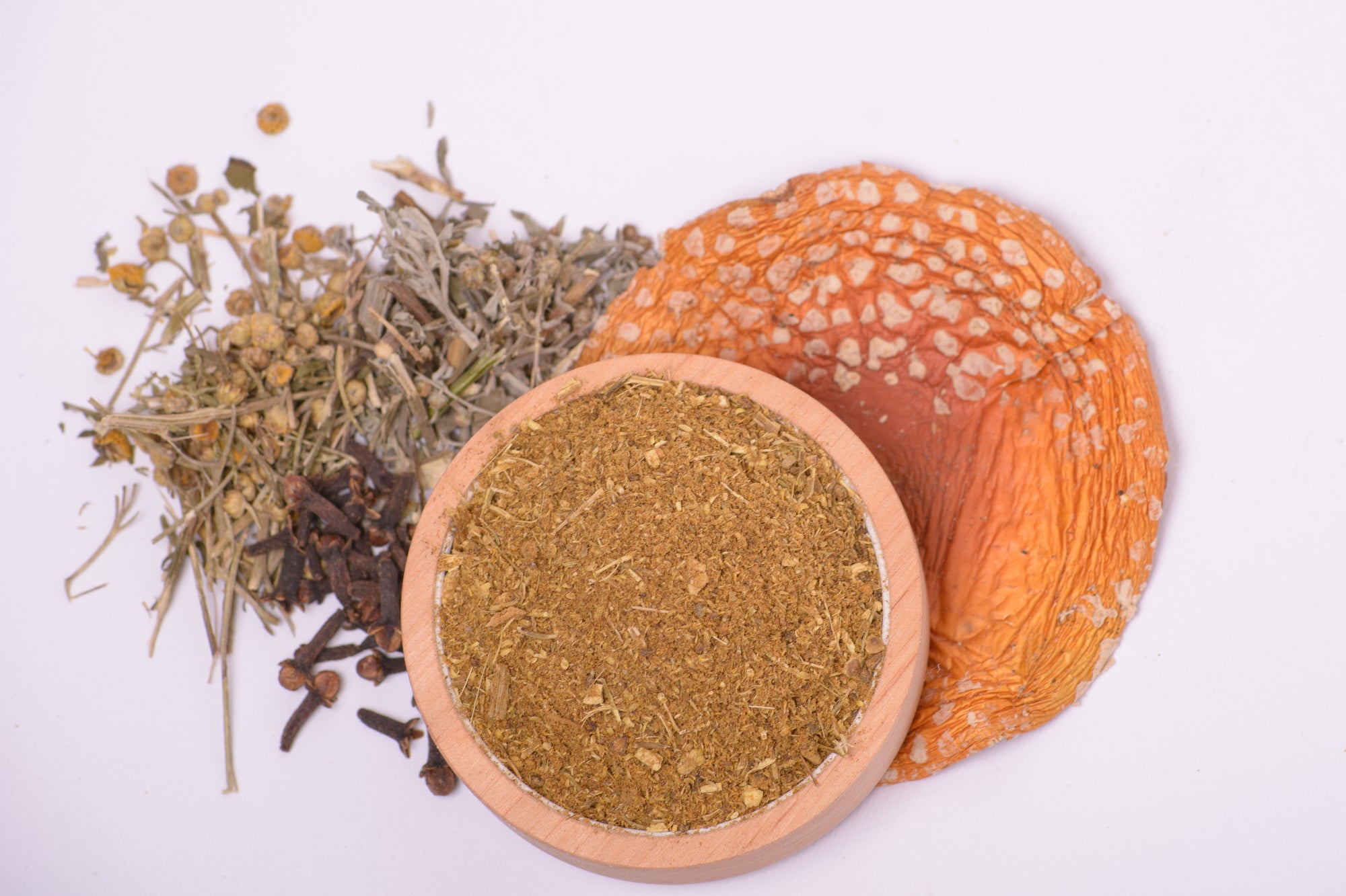 The main components of the troychatky to which we added ground red fly agaric include tansy, wormwood and cloves.