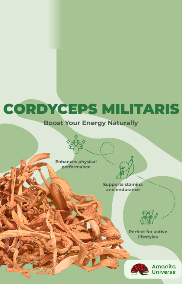 It is known for its antioxidant and anti-inflammatory properties, contributes to immune system strengthening, and enhances endurance. Cordyceps can also help reduce stress and fatigue levels, improve cardiovascular function, and support liver health. Its ability to improve sleep quality and boost energy makes it popular among active individuals and athletes. It is believed to also slow down the aging process and may have potential.