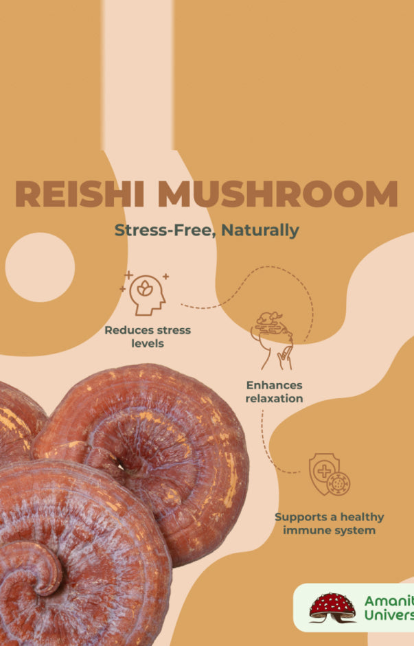 Composition: Reishi - Ganoderma lucidum mushroom presented in dried form.